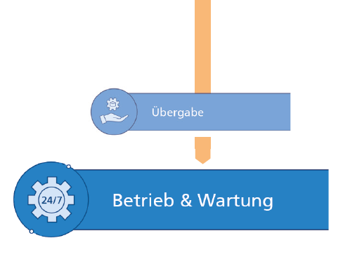 In der abschließenden Phase des Betriebs und der Wartung wird das im vorhergehenden Schritt definierte Service- und Wartungskonzept umgesetzt. Ziel ist es, alle Funktionalitäten während des Betriebes sicherzustellen.
